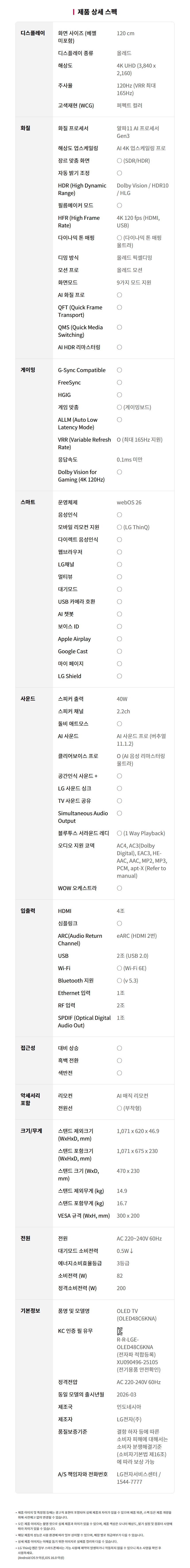 모델명OLED48C6KNA